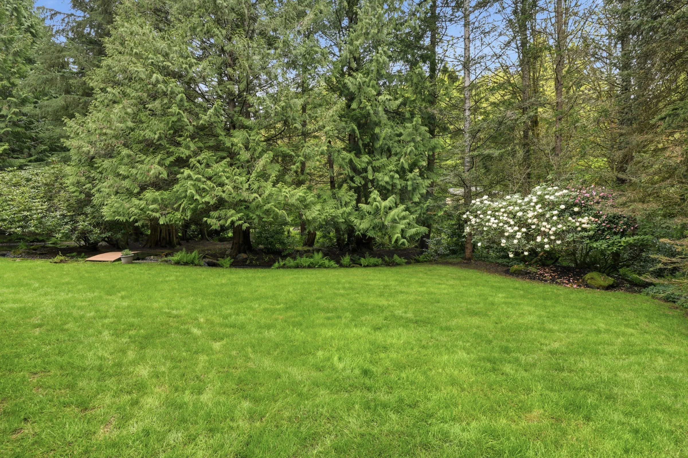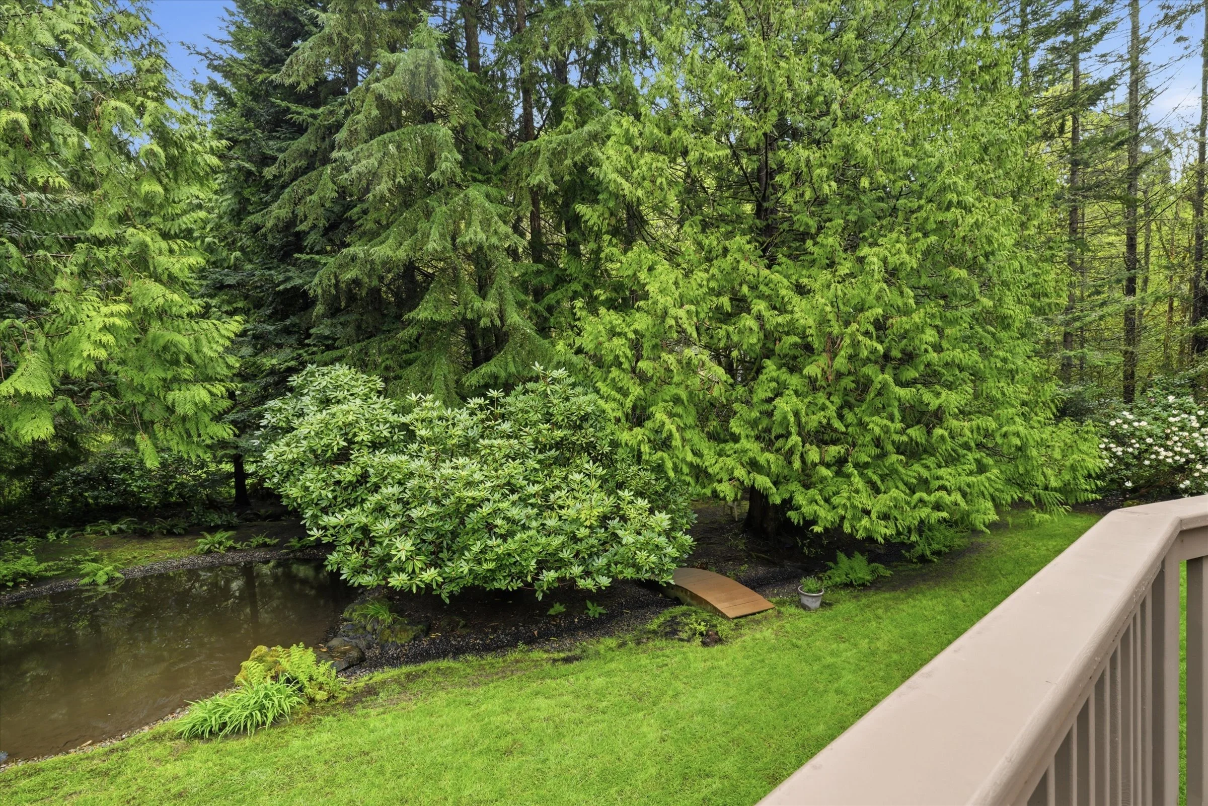 Enjoy complete privacy surrounded by lush gardens, mature trees, and beautifully landscaped grounds, along with a large, level yard. Gorgeous views of a tranquil pond and a serene babbling creek create a truly unique and lovely setting, with plenty of room for kids to roam and explore nature right in their own backyard.